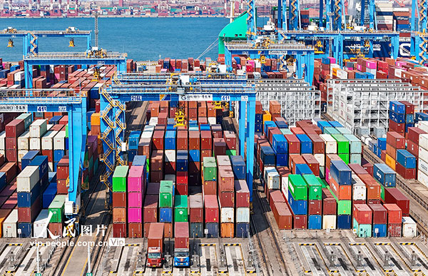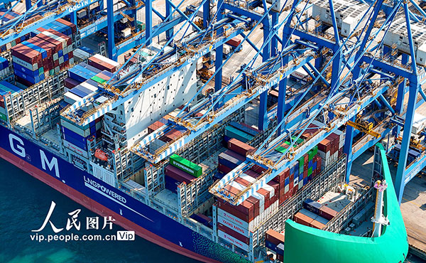 山东港口青岛港2024年新开辟集装箱航线18条、总数超230条,数量密度稳居北方港口首位。今年以来,山东港口青岛港开通两条到东南亚、地中海方向的“一带一路”航线,合计新开4条国际集装箱航线,助力打造世界级海洋港口群,加快建设世界一流海洋港口。张进刚摄(人民图片网)