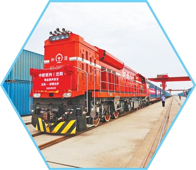 中欧班列精品班列打通了辽宁与中亚、欧洲的贸易通道,为区域外向型经济发展注入新动能。图为中欧班列精品班列沈阳首发。