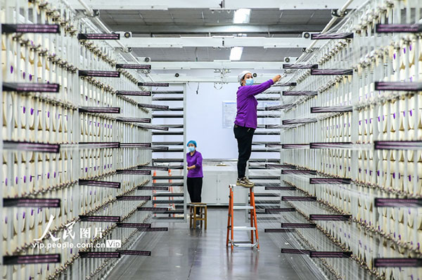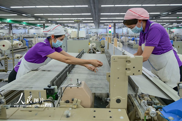 2025年11月1日,新疆昌吉回族自治州呼图壁县工业园区轻工产业园内,一家医用纺织企业的智能化生产线全速运转,工人正在有序作业,全力冲刺年度产能目标。陶维明摄(人民图片网)