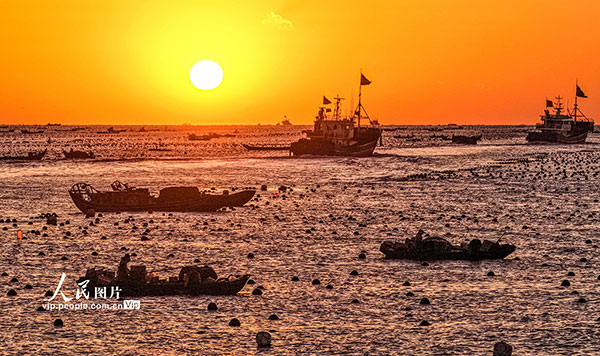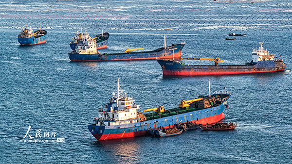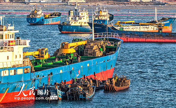 2025年11月10日,在山东省荣成市俚岛湾、爱伦湾等海域,养殖户们抓紧时间将南下“越冬”的鲍鱼装船,发往福建海域继续养殖。