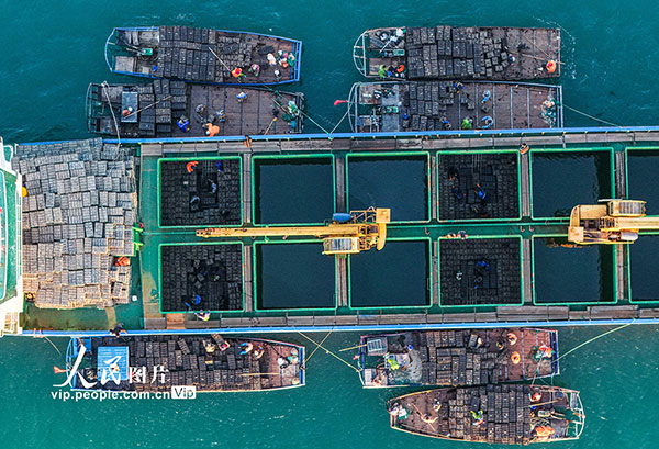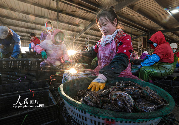 据了解,这批将赴福建海域“越冬”的鲍鱼达1200万头。为应对冬季低温养殖环境,山东荣成与福建莆田、平潭等地自2004年起开展鲍鱼南北转场、冬夏对调养殖合作,显著提升了养殖效益。李信君摄(人民图片网)