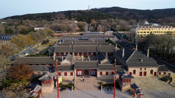 这是12月10日拍摄的威海刘公岛上的海军公所历史遗存(无人机照片)。