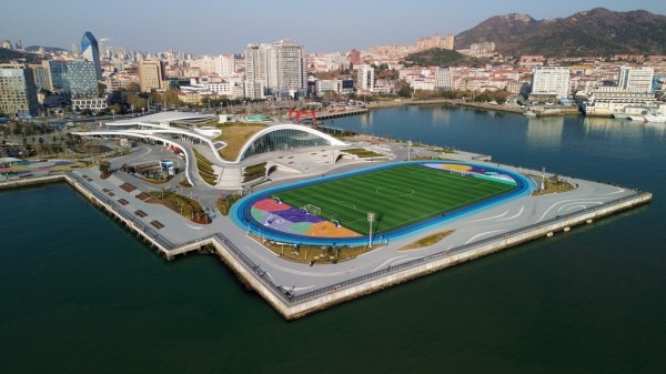 这是12月9日拍摄的威海至海港湾球场(无人机照片)。