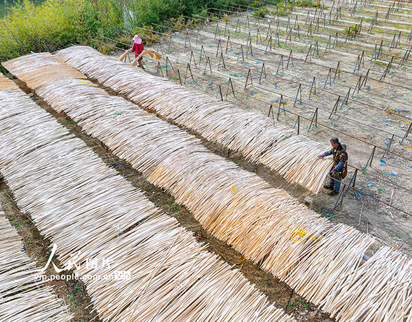 近年来,长兴县积极推动毛竹资源转化与精深加工,将竹材制成竹筷、竹帘、竹椅、凉席等产品,带动村民增收,助力乡村振兴。陈海伟摄(人民图片网)