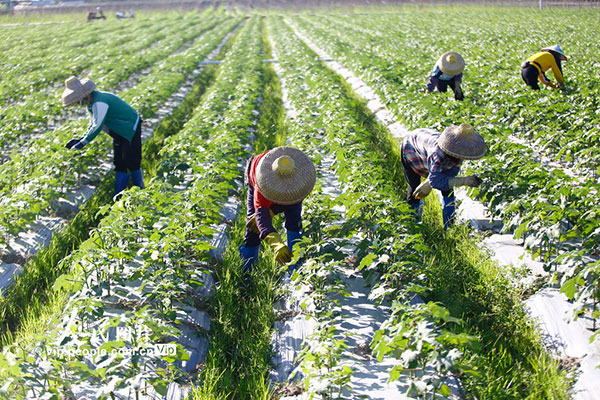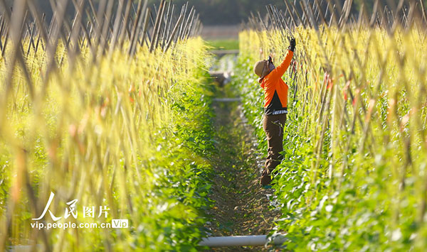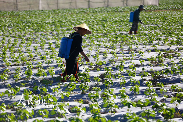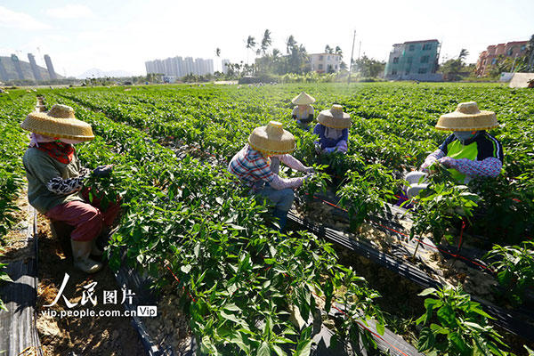 现在正是三亚冬季蔬菜生长时节,当地农民抢农时,在田间施肥、管护,一片繁忙景象。陈文武摄(人民图片网)