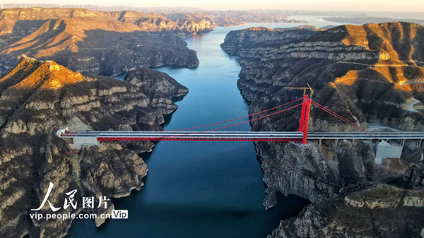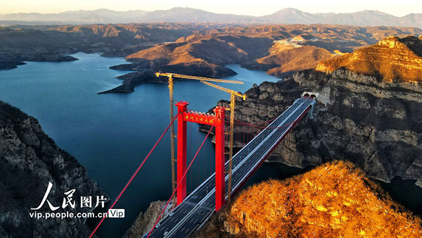 2025年12月25日,河南济源与洛阳新安县交界处的黄河段上,世界首座独塔地锚式回转缆悬索桥——济新高速黄河三峡大桥进入最后调试准备阶段,通车在即。作为济新高速的关键控制性工程,大桥通车后将使黄河两岸通行时间从2小时缩短至20分钟,彻底打破区域交通壁垒,对于整合区域旅游资源、带动黄河两岸经济发展、推动黄河流域生态保护具有重要意义。张光辉摄(人民图片网)