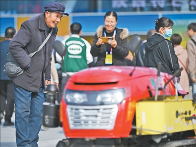 参观者在杨凌农高会上了解农机。