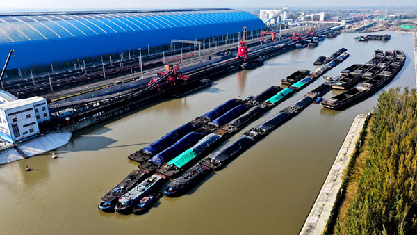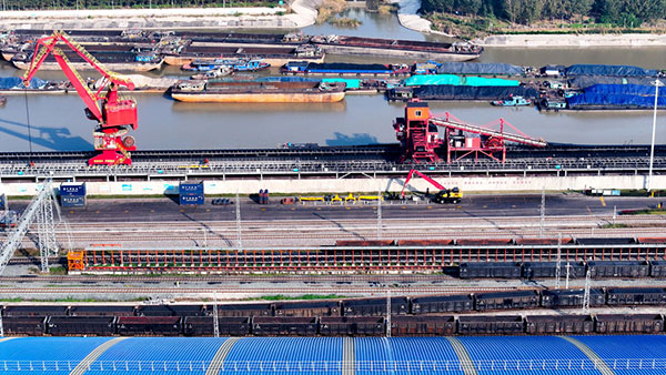江北内河大港山东济宁港航梁山港是连接西部煤炭产地和长江经济带的重要港口物流枢纽。随着供暖季的到来,该港加强煤炭“采储运销”,构建保供机制,确保冬季煤炭供应。新华社记者 郭绪雷 摄