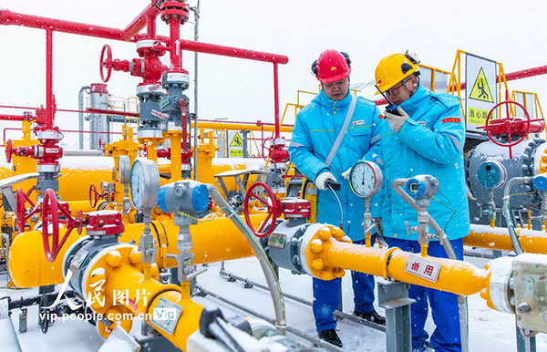 2025年12月22日,甘肃省张掖中石油昆仑燃气有限公司闻雪而动、以雪为令,启动降雪应急预案,组织工作人员对天然气门站开展全方位安全巡检,全力保障燃气供暖安全稳定供应。杨潇摄(人民图片网)