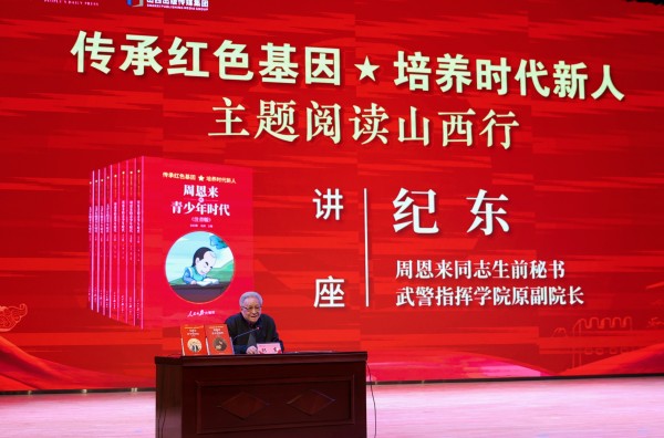 “传承红色基因 培养时代新人”丛书由当代中国研究所所长、中华人民共和国国史学会会长金民卿,周恩来总理侄外孙沈清共同担任主编。目前已出版的《毛泽东青少年时代》和《周恩来的青少年时代》系列图书,根据不同年龄段分为注音版、儿童版、少年版、青年版。本次活动,与会嘉宾向太原市成成中学校师生赠送《毛泽东的青少年时代》《周恩来的青少年时代》系列图书。
