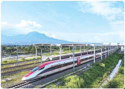 印度尼西亚爪哇岛的群山间,一列银红相间、流线型的动车组平稳地行驶在崭新的轨道上——这是雅万高铁每日运行的图景。对于当地居民阿里夫来说,这一展现“中国速度”的列车早已融入他的生活。“以前从雅加达到万隆要3个多小时,现在最快只要40分钟!”他笑着比画,“我经常坐高铁去看望家人,车厢宽敞舒适,就像在地上飞一样。”