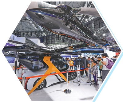 奇瑞控股集团有限公司在本届大会展示的飞行汽车吸引观众眼球。