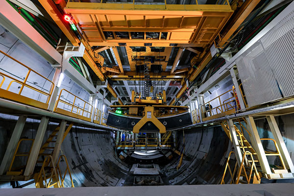 1月6日,中铁十四局施工人员在隧道内吊装管片。