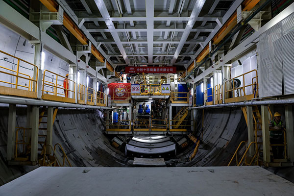 1月6日,“深江1号”盾构机在珠江入海口海平面下掘进。