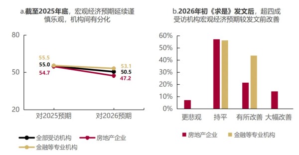 2026年初,《求是》发文呼吁“改善和稳定房地产市场预期”。为了解受访机构的预期变化,课题组新增了简要的调研题目,跟踪对宏观经济与不动产行业两方面预期的变化。新增调研内容回收截止时间为2026年1月14日。