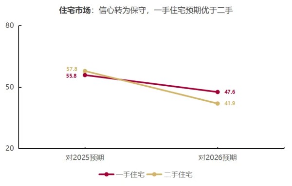 不动产分业态预期:住宅市场方面,截至2025年底,受访机构2026年的预期转为保守,对一手住宅的预期优于二手住宅。图5显示,相较一手住宅,二手住宅预期调整幅度更大,受访机构认为二手住宅面临更大压力。