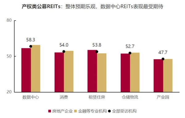 具体到产权类公募REITs细分领域,截至2025年底,受访机构对2026年数据中心、消费基础设施、租赁住房、仓储物流等类别公募REITs的市场表现持乐观预期(图8)。这一特征既体现出市场对不动产金融创新模式的认可,也反映出机构对现金流长期稳定的REITs细分赛道抱有信心。而产业园公募REITs受制于底层资产空置率上升与租金收益下滑,市场表现的预期弱于其他细分领域。