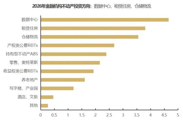 金融机构投资方向:金融机构在2026年的投资意愿,集中于需求旺盛、政策支持的领域。图11显示,数据中心、租赁住房和仓储物流是金融机构最青睐的三类资产。数据中心位居第一,显示出在数字经济与人工智能快速发展背景下,资本对算力基础设施长期增值潜力的认可。租赁住房和仓储物流分列二、三位,表明金融机构优先选择具备政策明确支持、现金流稳定性高且抗周期能力强的资产类别。