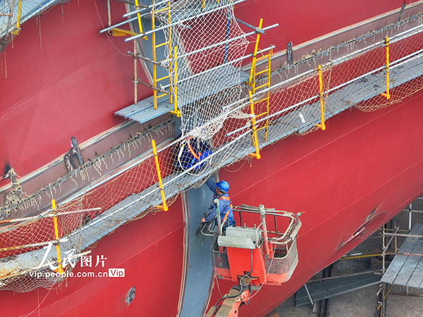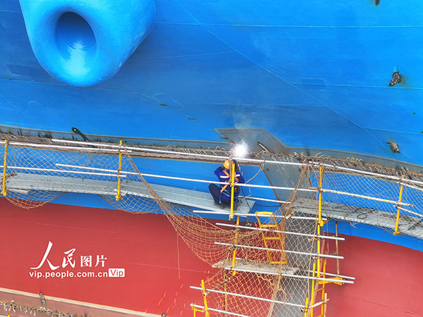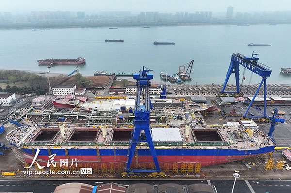 2026年2月27日,招商工业南京金陵船厂内,工人们正加紧推进船舶订单生产,确保按期交付。