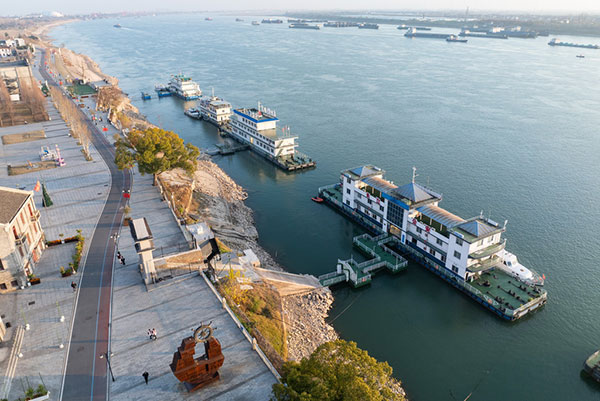 这是1月7日拍摄的位于长江边的湖北省荆州市沙市洋码头文创园(无人机照片)。