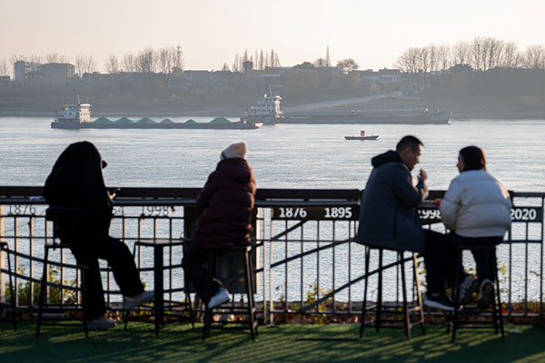 1月7日,游客在湖北省荆州市沙市洋码头文创园休憩。