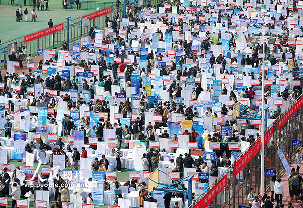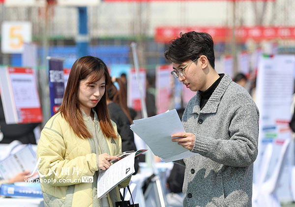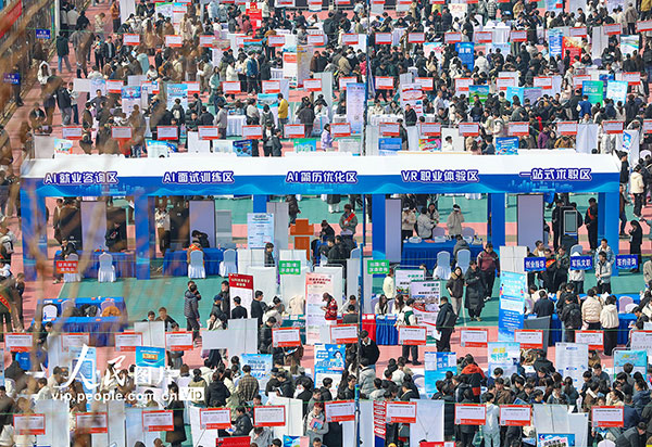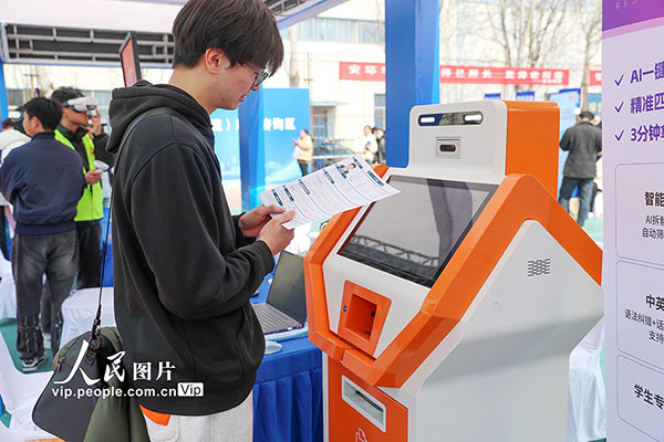 眼下正值“金三银四”招聘旺季,山东多地运用AI、VR等新技术优化就业服务,促进校企人才精准对接。张进刚摄(人民图片网)