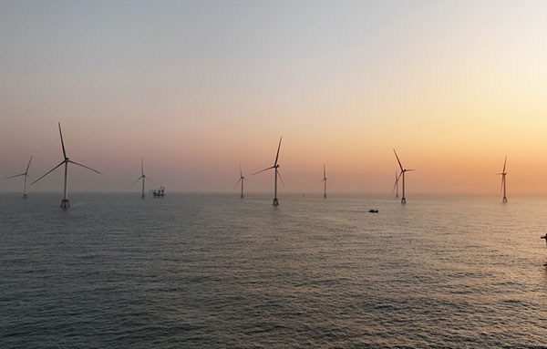 这是1月13日拍摄的闽南海域海上风电场一角(无人机照片)。
