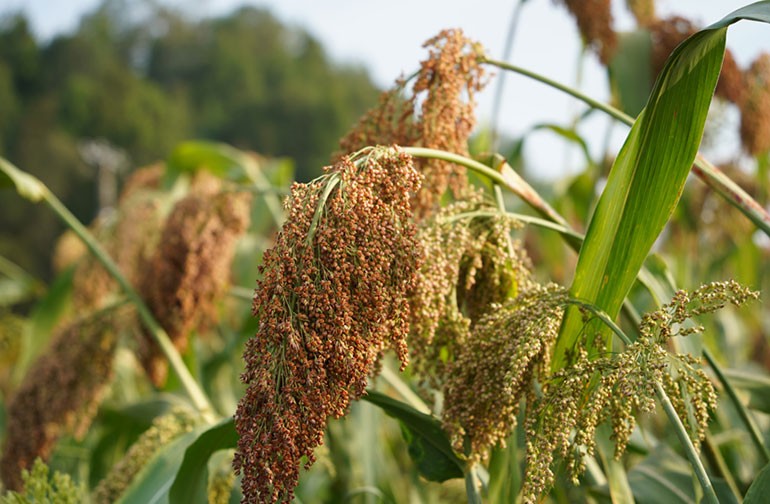 近日,在四川省宜宾市和巴中市恩阳区共建酿酒专用粮基地里面,连片的高粱把田野染成一片褐红,饱满的穗子压弯了茎秆,风一吹便涌起阵阵谷物清香。这片丰收景象的主角,正是来自川南宜宾的优质品种“宜糯红4号”,如今它在川北巴中恩阳的土地上茁壮成长,喜获丰收。
