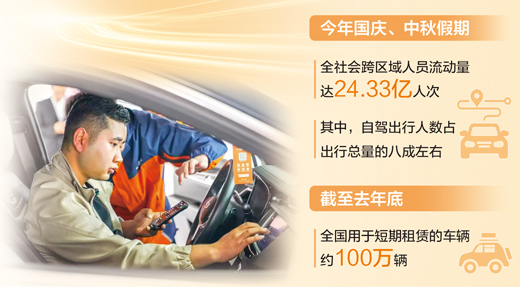 交通运输部数据显示,今年国庆、中秋假期,全社会跨区域人员流动量达24.33亿人次,其中,自驾出行人数占出行总量的八成左右。