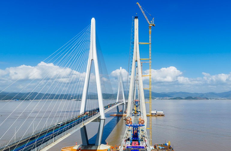 2025年10月10日,浙江宁波市域铁路象山港跨海大桥南侧边跨顺利合龙。