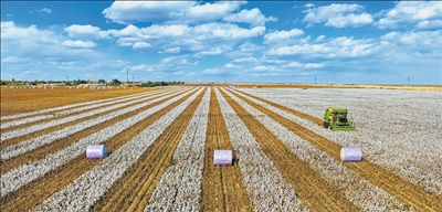 当前正值新疆棉花采收季,据新疆农业部门数据,今年新疆将投入7500余台采棉机,机采率继续保持在90%以上。