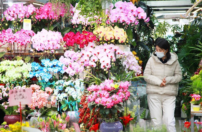 2025年12月29日,江苏省南京市,市民在汉中门花卉市场购买花卉,迎接新年。