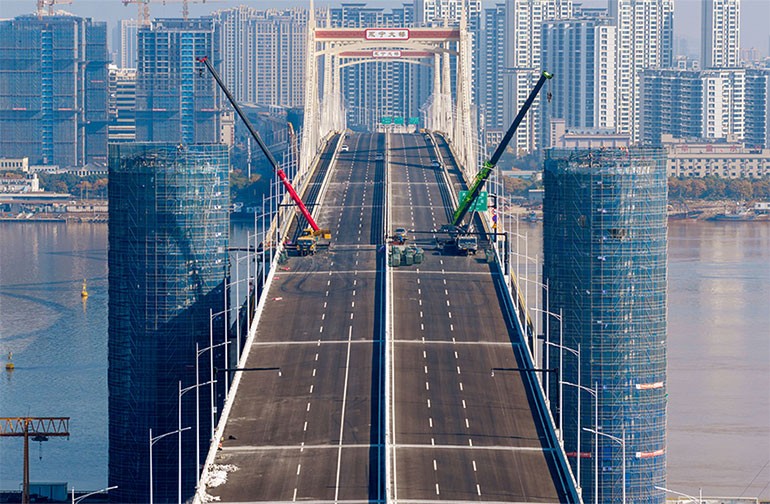 2025年12月17日,浙江省瑞安市,永宁大桥建设如火如荼。