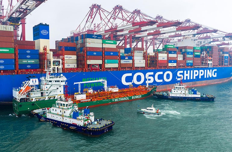 3月3日,山东港口青岛港完成首批两艘国际航行船舶绿色甲醇“船对船”加注作业。此次作业全程不影响码头正常生产,实现了“边作业、边加注”的突破。