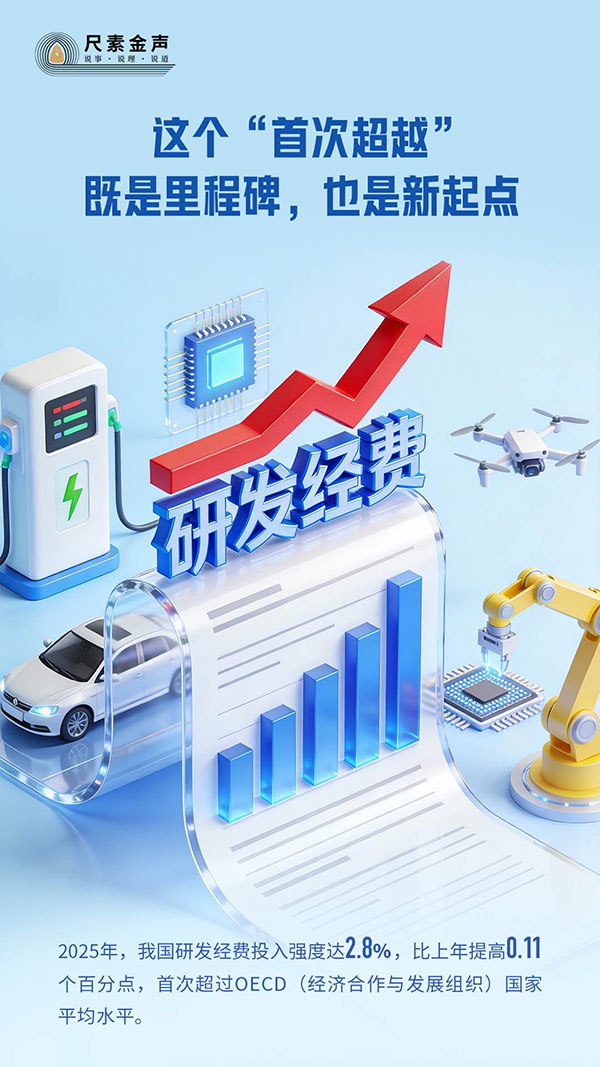 国家统计局最新公布的2025年中国经济“成绩单”上有一项数据尤为引人关注:2025年,我国研发经费投入强度达2.8%,比上年提高0.11个百分点,首次超过OECD(经济合作与发展组织)国家平均水平。