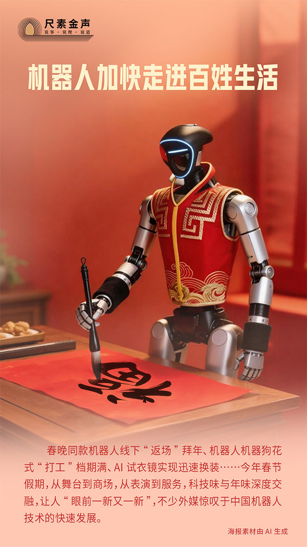 春晚同款机器人线下“返场”拜年、机器人机器狗花式“打工”档期满、AI试衣镜实现迅速换装……今年春节假期,从舞台到商场,从表演到服务,科技味与年味深度交融,让人“眼前一新又一新”,不少外媒惊叹于中国机器人技术的快速发展。
