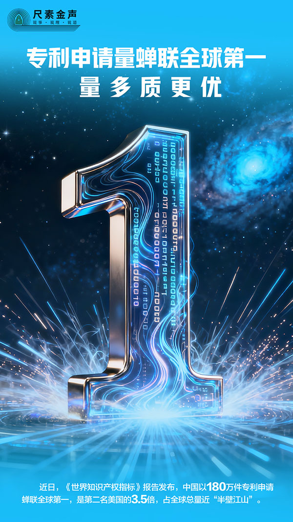 近日,《世界知识产权指标》报告发布,中国以180万件专利申请蝉联全球第一,是第二名美国的3.5倍,占全球总量近“半壁江山”。