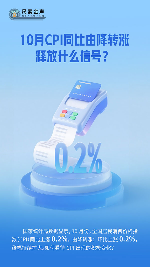 国家统计局数据显示,10月份,全国居民消费价格指数(CPI)同比上涨0.2%,由降转涨;环比上涨0.2%,涨幅持续扩大。如何看待CPI出现的积极变化?