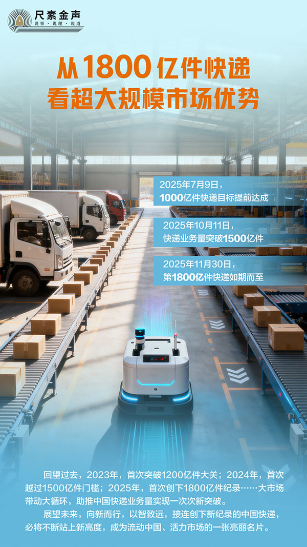 首次突破1800亿件!11月30日,国家邮政局快递大数据平台,一长串数字变换的短暂一瞬,中国快递业务量创下历史新纪录。